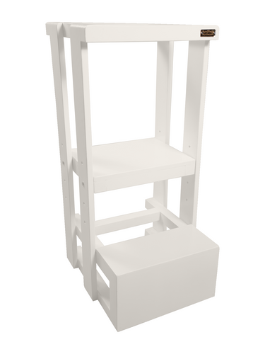 - La Torre Montessori para niños es una especie de banco con una estructura de seguridad en la parte alta que evita caídas y permite a los niños desarrollar su curiosidad, evitando que se sientan excluidos